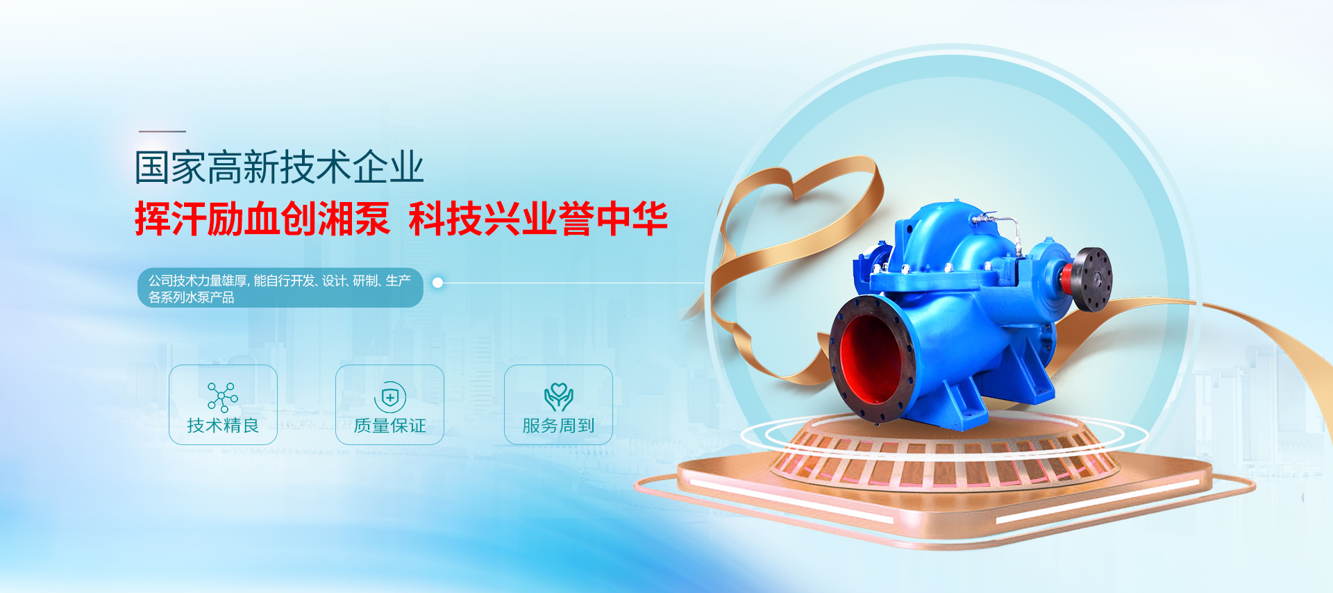 公司技術(shù)力量雄厚,能自行開發(fā)、設(shè)計(jì)、研制、生產(chǎn)各系列水泵產(chǎn)品,建有先進(jìn)的水泵測(cè)試中心,設(shè)立了計(jì)量室、化驗(yàn)室、熱處理車間,有各種高精檢測(cè)儀器設(shè)備,健全了產(chǎn)品全過(guò)程質(zhì)量保證體系,并通過(guò) 了ISO9001:2008質(zhì)量管理體系和環(huán)境管理體系認(rèn)證,是集科研、開發(fā)、生產(chǎn)、商貿(mào)于一體高科技企業(yè)。
